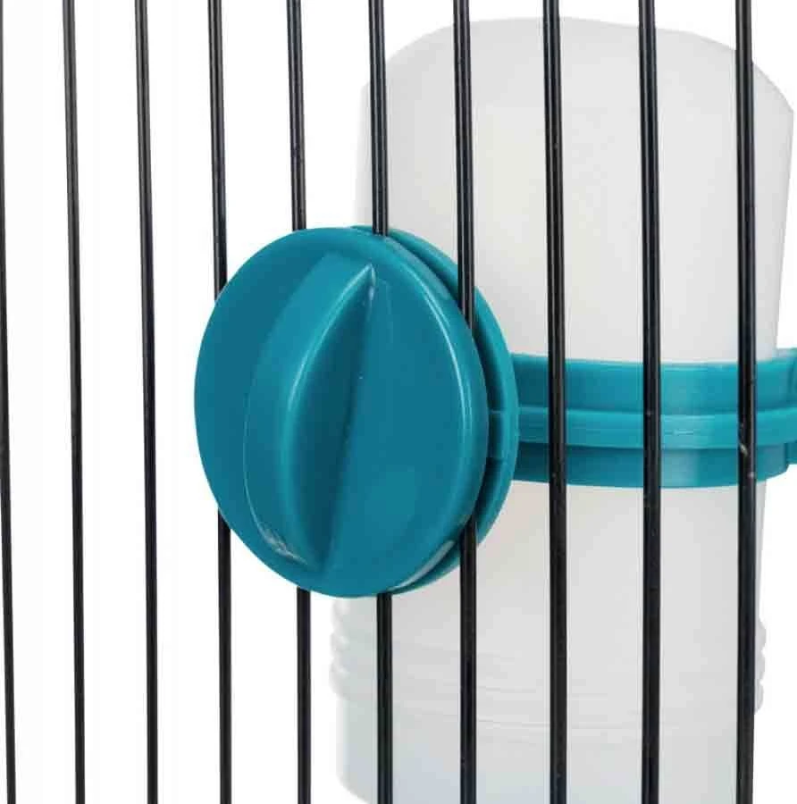 - se fixe aux barreaux de la cage et au mur
