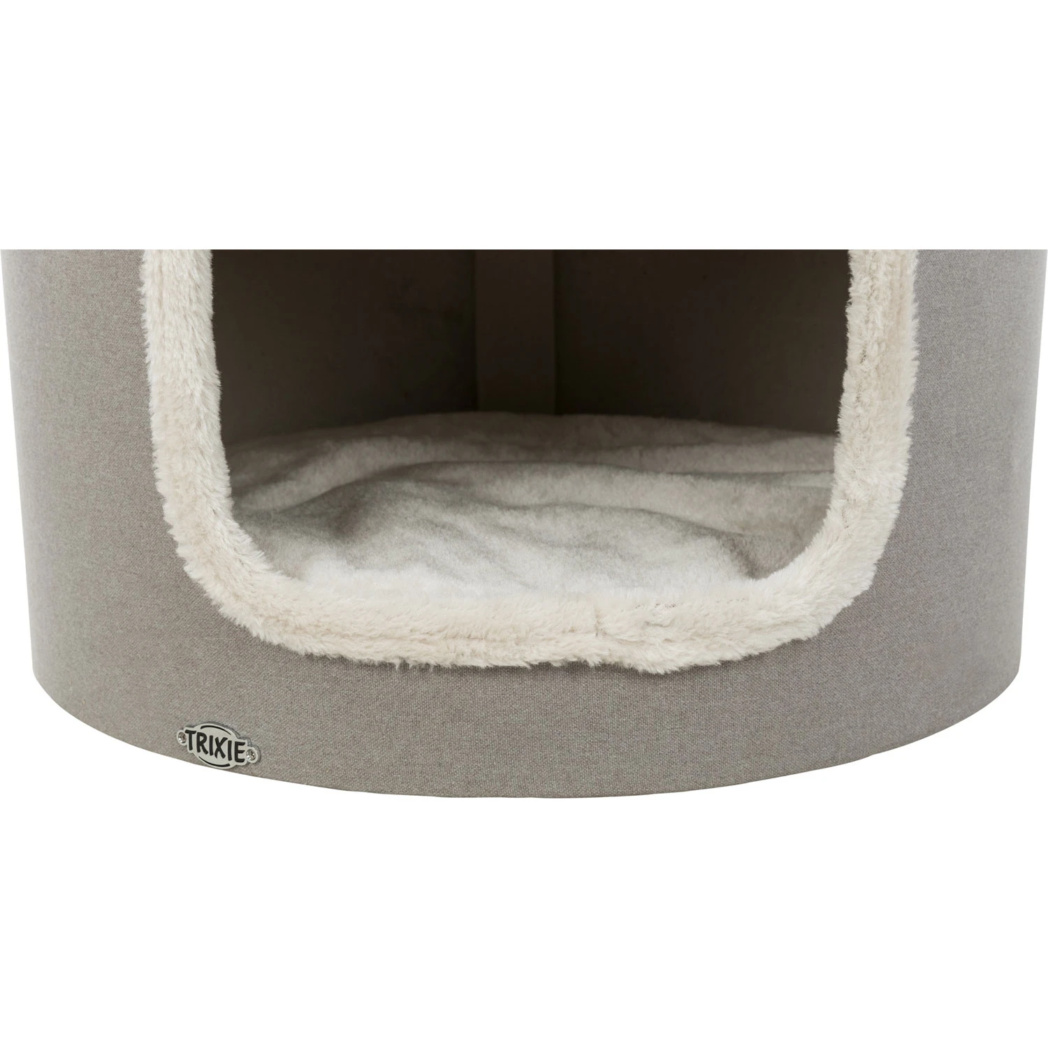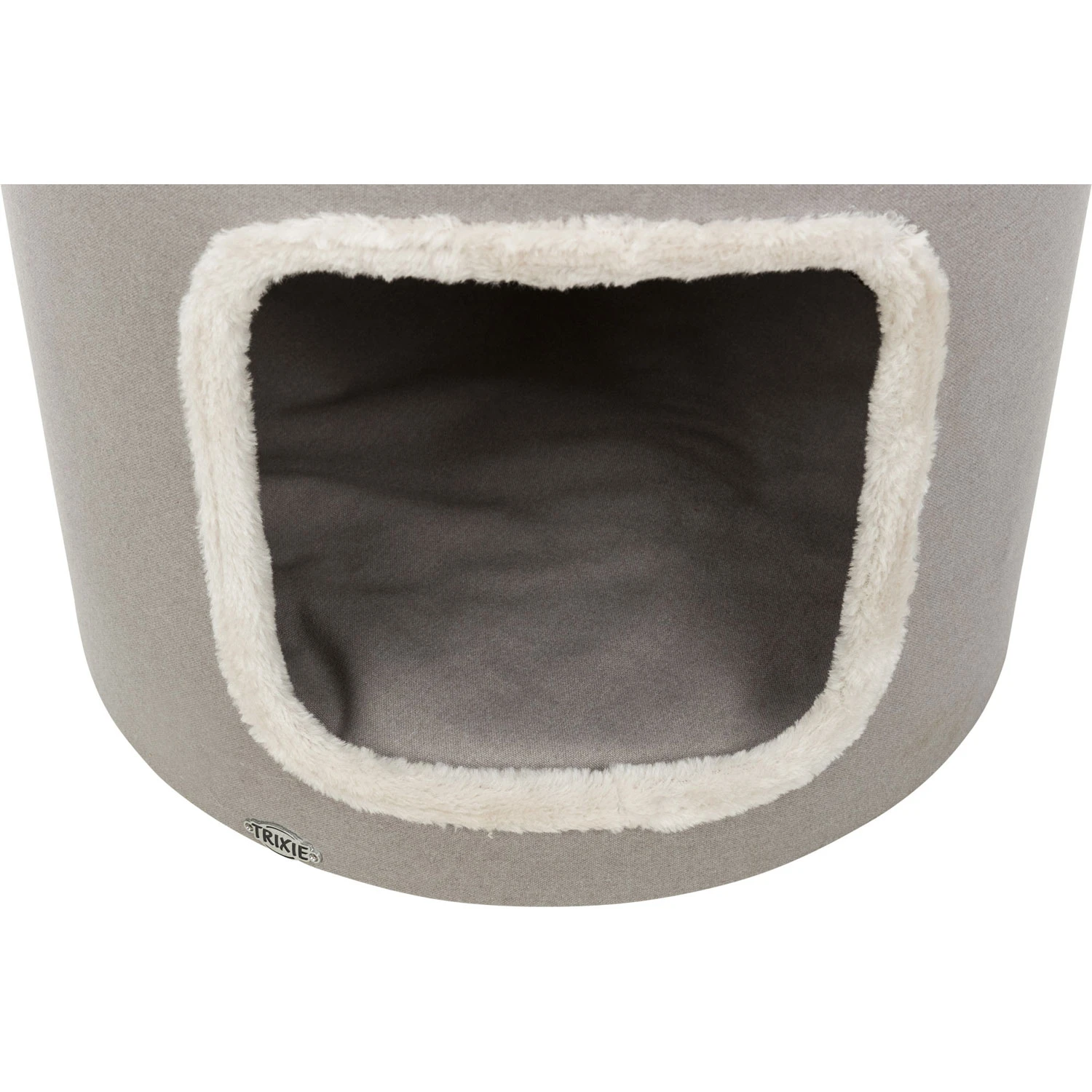 - Cave bordé de peluche / doublure (polyester) et de coussin amovible (lavable à la main)