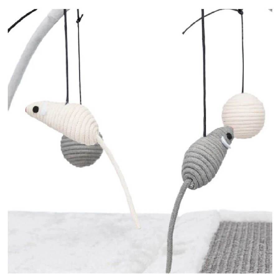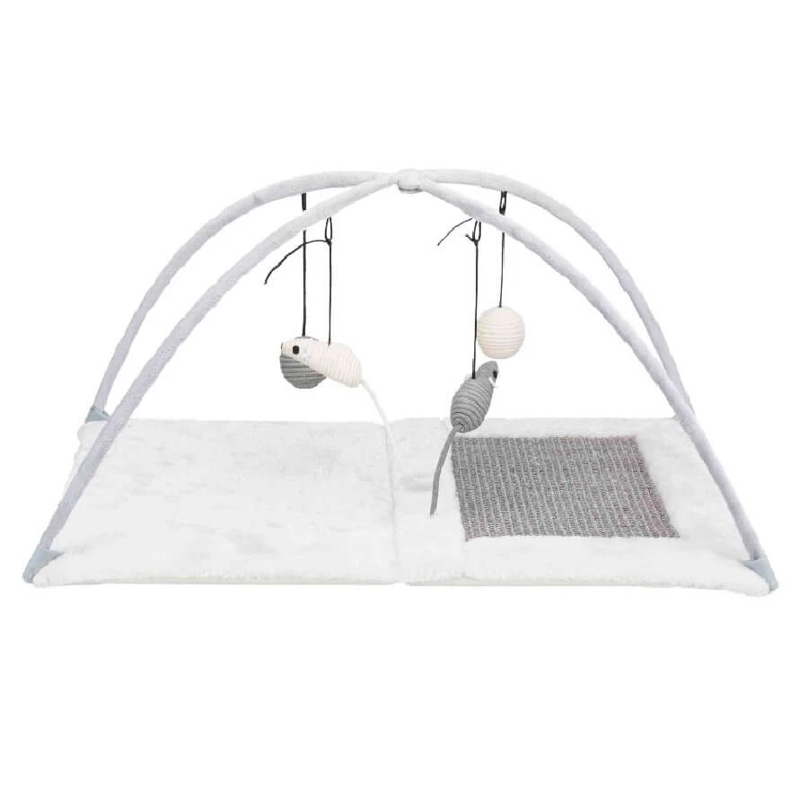 Ce tapis deux en un sera parfait pour les matous joueurs, car il offre une surface pour y faire leurs griffes ainsi que des jouets suspendus pour réveiller leur instinct de chasse. Son design très enfantin est aussi craquant qu’utile aux jeunes chats et chatons redoublant d’énergie, et à l’esprit intrépides.