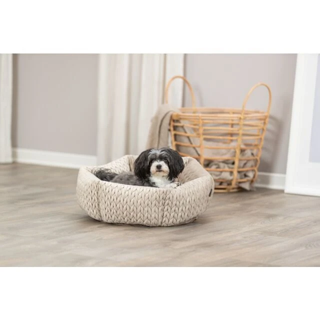 Le lit Livia garantira à votre compagnon à quatre pattes un repos douillet et confortable. Conçu avec une couverture en polyester au toucher velours, il offre une douceur exceptionnelle qui invite à la détente. Le rembourrage en fibres de polyester assure un soutien moelleux, tandis que le coussin fermement fixé empêche tout déplacement pour un confort constant. La couverture est déhoussable, permettant un entretien facile et rapide.