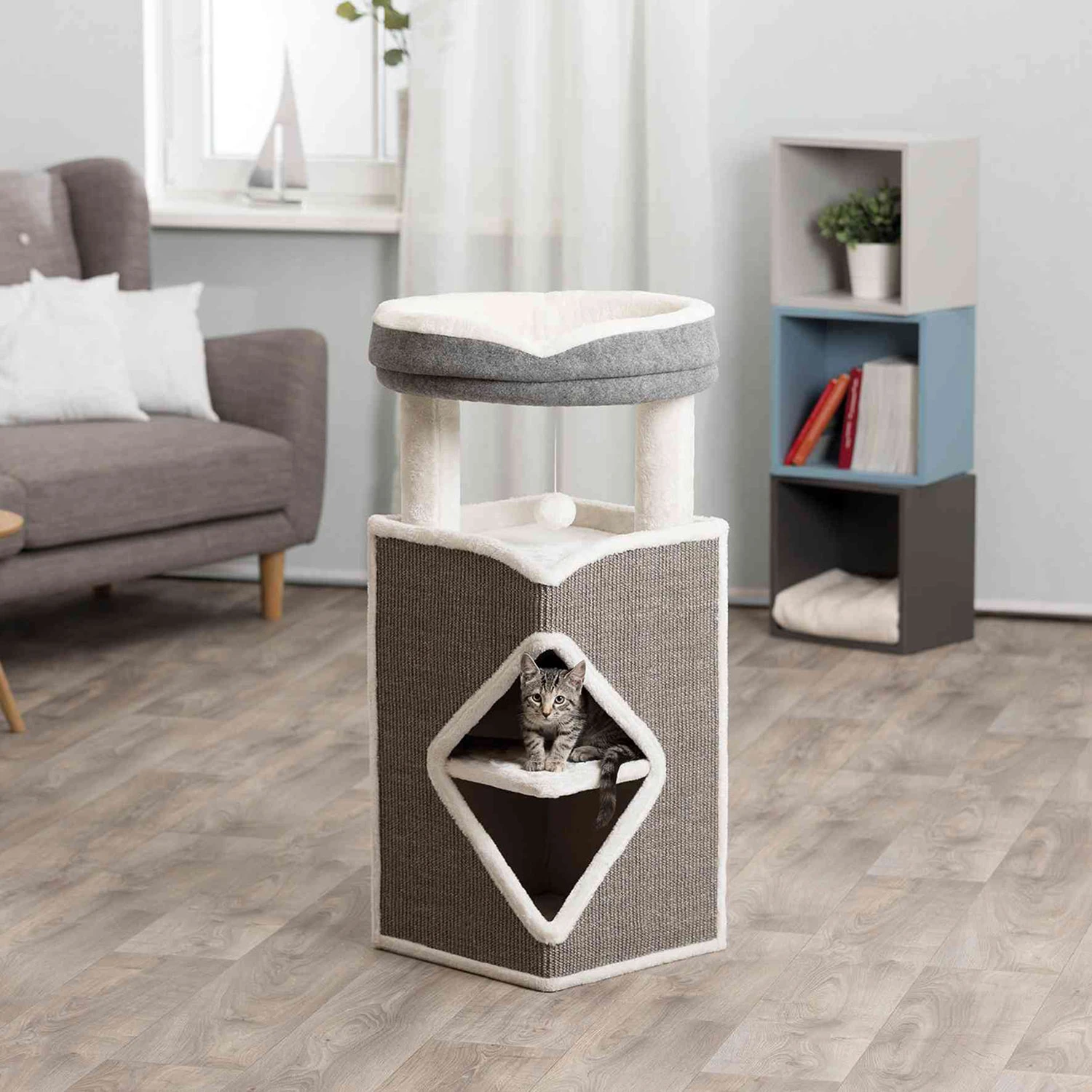 - Avec doublure en peluche (polyester) et surface de vidage sisal